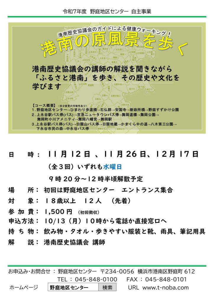 ・上永谷駅発188番「野庭地区センター・ケアプラザ前」下車、徒歩すぐ