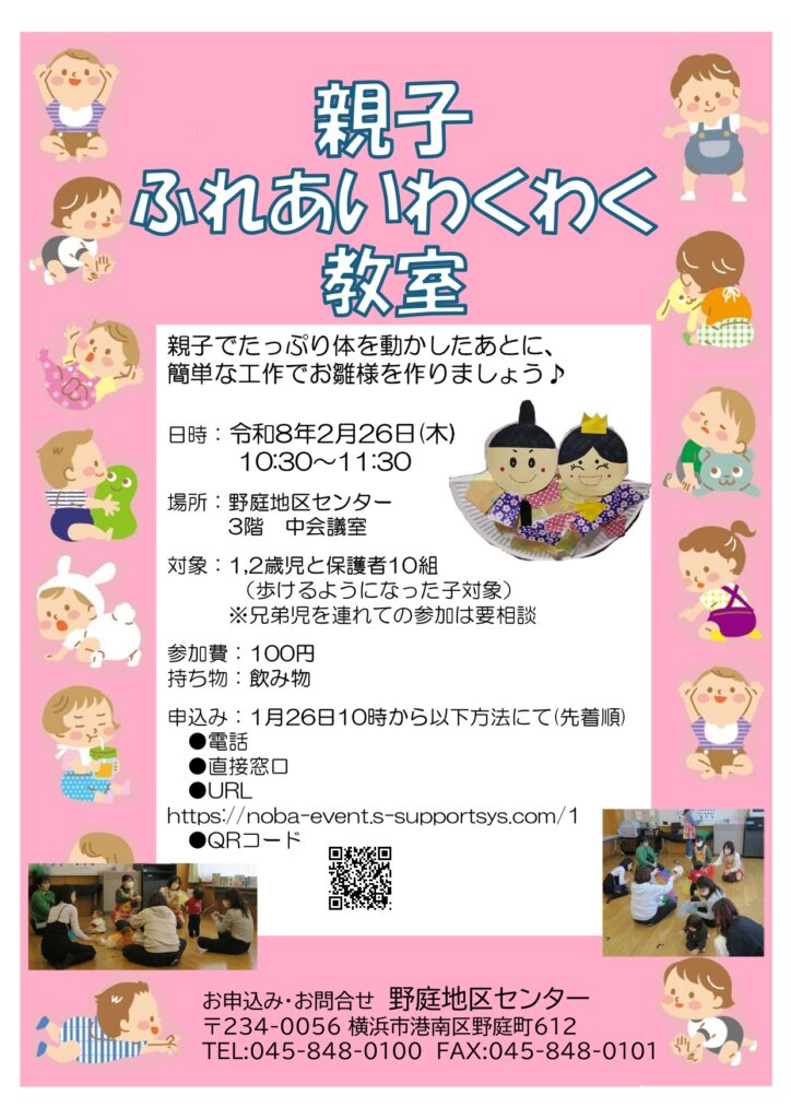 1月26日募集開始 「親子ふれあいわくわく教室」
